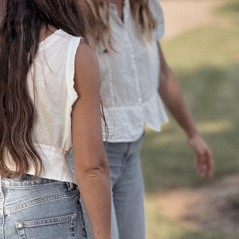 Blusa fresca, romantica,  con tablitas en el cuello  y en las sisas.