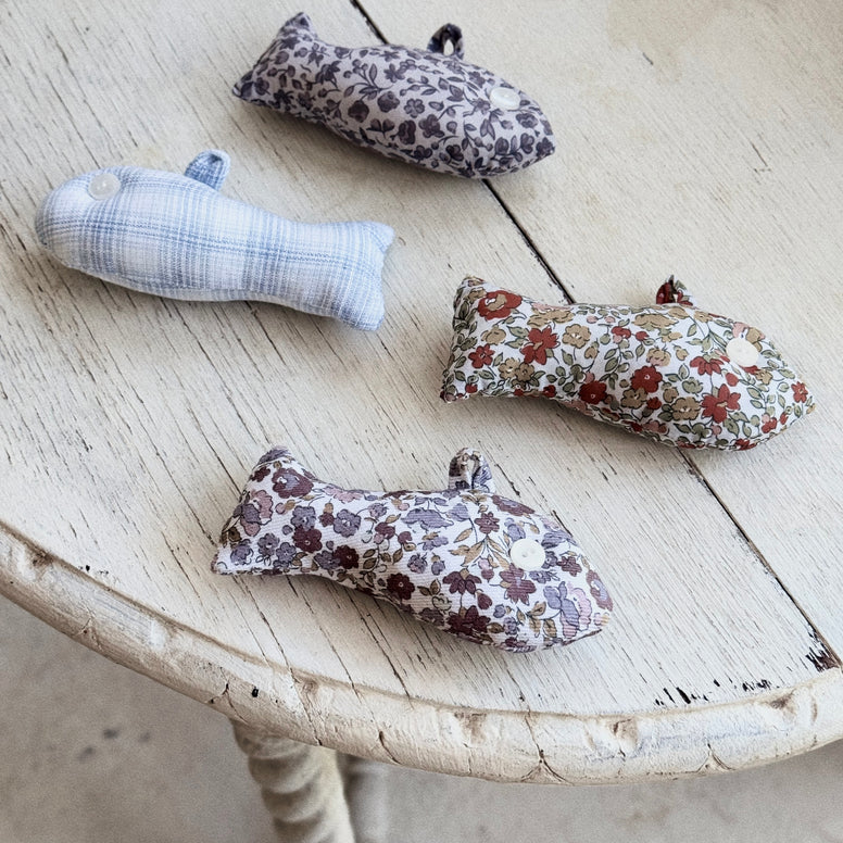 Medidas aprox de cada pescadito: 10 cm x 5 cm.